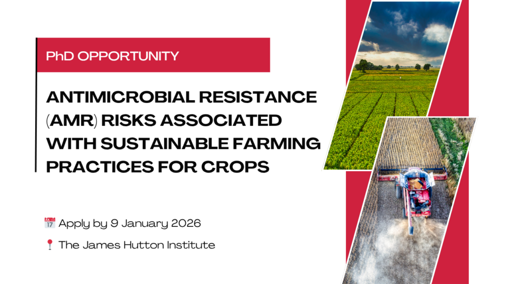 The James Hutton Institute is offering a fully-funded 4-year PhD studentship exploring antimicrobial resistance (AMR) risks associated with sustainable farming